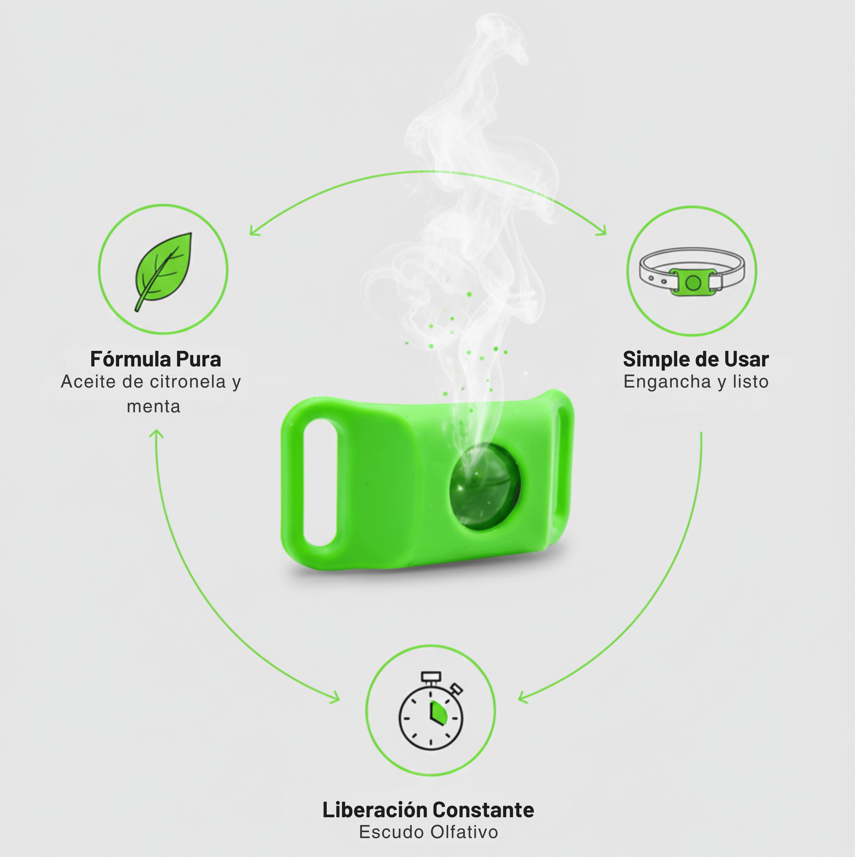 Gracias al diseño de la cápsula, las esencias se liberan de forma gradual y estable, creando un escudo olfativo alrededor de tu mascota